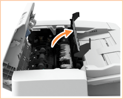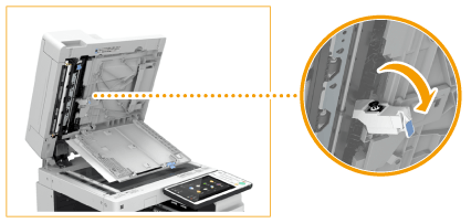 Trek aan de hendel op de aanvoer om de klep van het scangebied van de documentaanvoer te openen.