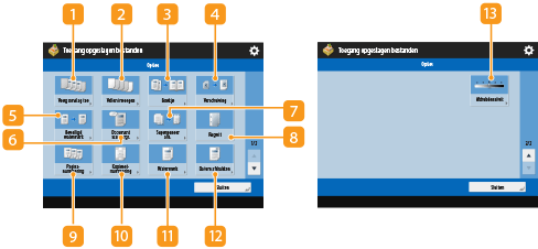 Wanneer u op <Toegang opgeslagen bestanden> drukt in het scherm <Home> en vervolgens op <Postbus>, <Geavanceerde ruimte>, <Netwerk> of <Geheugenmedia> drukt om bestanden af te drukken, wordt het volgende instellingenscherm weergegeven.