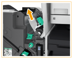 Draai de groene knop om het vastgelopen papier naar blad B te verplaatsen.