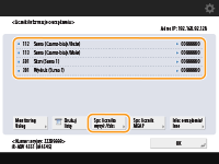 <Spr. Konfigur. Urządzenia>, można sprawdzić zainstalowane w urządzeniu wyposażenie opcjonalne oraz wersję układu zabezpieczeń dotyczącego szyfrowania danych na dysku twardym.Szczegółowych informacji na temat stanu liczników może udzielić autoryzowany sprzedawca produktów firmy Canon.