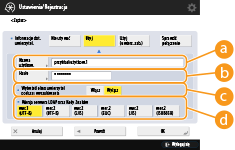 Przykład: Jeżeli nazwa domeny Windows to „przykład” i nazwa użytkownika Windows to „użytkownik1”, wprowadź „przykład\użytkownik1”. Jeżeli używany jest system Lotus Notes Domino, należy wprowadzić nazwę identyfikującą użytkownika uwierzytelnionego (dn), na przykład: cn=użytkownik1,ou=zespół1,ou=działsprzedaży,o=canon.