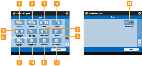 Quando carrega em <Aceder a ficheiros guardados> no ecrã <Início> e depois carrega em <Caixa de correio>, <Caixa avançada>, <Rede>, ou <Suporte de memória> para imprimir ficheiros, é apresentado o seguinte ecrã de programações.