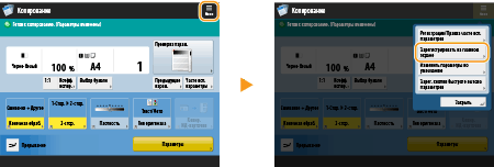 Параметры, которые можно зарегистрировать в разделе <Часто исп. параметры> для функции <Копия> Оптимизация операций копирования