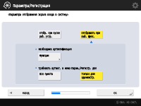 Выберите время для отображения экрана входа. Если вы выберете <Отображать при выб. функ.>, нажмите <Функции>, выберите функцию для отображения экрана для входа и нажмите <OK>. Также выберите настройки на экране <Параметры/Регистрация>, для которых нужно отобразить экран входа в систему.