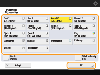 <OK>. Registrera ofta använda pappersformat och typer för universalfacket