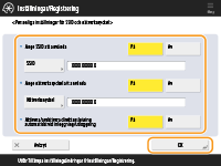 Tryck på <Personliga inställningar för SSID och nätverksnyckel>, ange personligt SSID och nätverksnyckel och tryck sedan på <OK>.