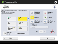 Registrera vanliga inställningarDu kan kombinera ofta använda mottagare och scanningsinställningar och lagra dem i en knapp, för att kunna använda kombinationen senare. Genom att trycka på den registrerade knappen när du scannar original, kan du snabbt ange önskade inställningar. Registrera en kombination av vanliga utskriftsinställningar