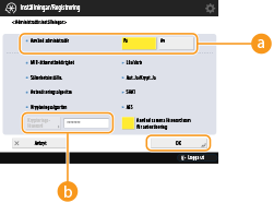 Den exklusiva gruppen är en grupp som förberetts för administratörer som använder Canon-program som iW Management Console. För att använda denna exklusiva grupp, tryck på <Ange dedikerad grupp>. För att ange en generell grupp, tryck på <Ange gruppnamn 1> eller <Ange gruppnamn 2>.