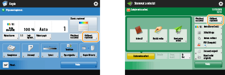 Tlačítka nastavení, která se zobrazují na obrazovce základních funkcí (pro kopírování, faxování a skenování), můžete změnit. Můžete také zobrazit jinou obrazovku základní ch funkcí, která bude přizpůsobená pro každého přihlášeného uživatele.