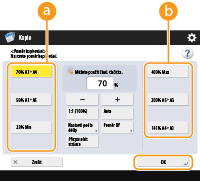 Když se na displeji zobrazí obrazovka pro výběr velikosti origináluJe-li <Vybrat papír> nastaveno na <Auto>, na displeji se může zobrazit obrazovka pro výběr velikosti originálu. Zobrazí se, protože není možné ověřit velikost originálu a není možný automatický výběr papíru, když pro kopírování uložíte mimořádně průsvitné originály, originály s mimořádně tmavou základní barvou nebo originály malých velikostí. Vyberte velikost originálu nebo nejbližší velikost odpovídající velikosti originálu.