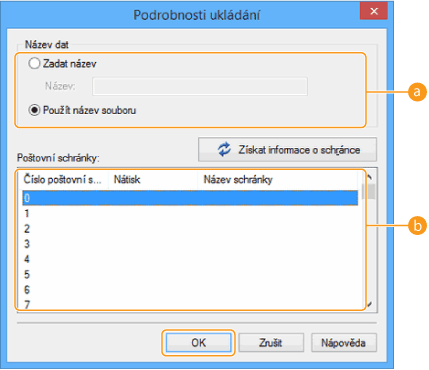 Název schránky uložený ve stroji lze použít pro ovladač tiskárny. Podrobné informace viz v Nápovědě k ovladači tiskárny.