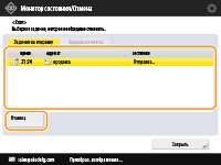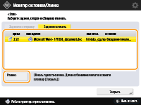 (Стоп) на панели управления, когда обрабатывается задание отправки/печати и отображается экран, ведущий к <Задания на отправку>/<Задания на печать>, текущее задание отправки/печати приостанавливается и появляется <Задания на отправку>/<Задания на печать>.
