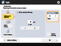 När du kopierar original som är mindre än det pappersformat som matas ut, kan det kopierade originalets kanter visas i den kopierade bilden. När du kopierar tjocka böcker kan mörka kanter visas. Med <Radera kant> kan du radera dessa ramlinjer och mörka kanter. Du kan även ange att maskinen inte ska slå hål i originalen.