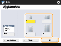 Om du ställer in <Affisch> när arbetssättet färg är inställt på <Auto (Färg/S/V)>, ställs <Välj färg> automatiskt in på <Fullfärg>. Grundläggande kopieringsfunktioner