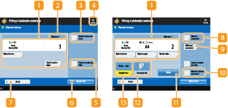 Zde se zobrazuje stav nastavení, např. velikost papíru, na který se má tisknout, a počet výtisků. V zájmu správného tisku dokumentů nastavení vždy zkontrolujte. Chcete-li nastavení změnit, stiskněte tlačítko pod zobrazením. Chcete-li změnit počet výtisků, zadejte počet s pomocí číselných tlačítek.