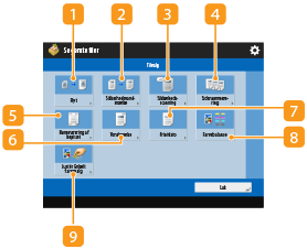 Printindstillinger, der er registreret i <Skift standardindstillinger>, anvendes på filerne, når de er gemt fra funktionen <Scan og gem> (<Indstillinger for adgang til gemte filer>