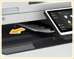 Hvis papir sidder fastklemt, skal du trække forsigtigt i det i pilens retning.