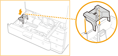 Установите модуль A5/A6 на левую направляющую для бумаги. При загрузке бумаги формата A5R установка модуля A5/A6 не требуется.