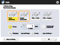 <Bygg jobb> på skärmbilden med grundläggande kopieringsfunktioner kan du använda Sortera/Gruppera även om originalet är placerat på originalglaset.Infoga ett skiljeark mellan varje sida under en grupputmatningOm du väljer <Gruppera (Samma sidor)> kan du infoga ett skiljeark mellan varje grupp. För mer information, se <Skiljeark mellan grupper>. <Kopia>