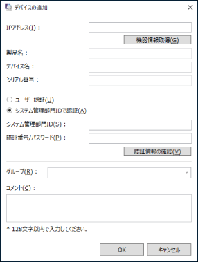 [システム管理部門IDで認証] | デバイス認証にシステム管理部門ID (システム管理者ID)を利用 |