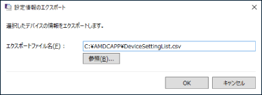 [設定情報のエクスポート] | 選択したデバイスの情報の保存先を設定 |