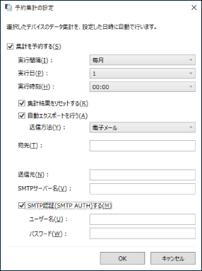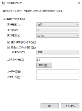 [予約集計の設定] | 選択したデバイスの予約集計と集計結果の自動エクスポートの条件を設定 |