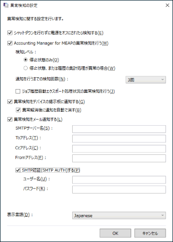 [Accounting Manager for MEAP/MEAP Liteの異常検知を行う] | チェックすると、AM for MEAP/MEAP-Liteの異常を検知 |