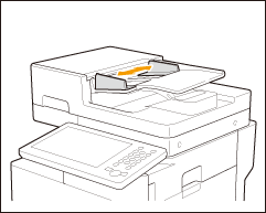 Fjern de scannede originaler fra originaludbakken for at forhindre papirstop. For at forhindre, at der efterlades originaler i udbakken med originaler, lyder indikatoren for print af originaler, mens der printes originaler, og blinker i et stykke tid efter alle originaler er blevet printet.