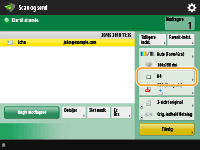 Hver gang du sender/gemmer et dokument, skal du trykke på <Tilvalg> på skærmen Grundlæggende scanningsfunktioner