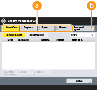 (Монитор состояния) отображается экран <Монитор сост.>. На этом экране можно узнать состояние печати и состояние передачи данных, а также оставшиеся количество тонера и объем памяти.