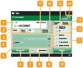 Отображает имя указанного адресата, номер факса, количество адресатов и текущее время.