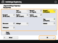 Om du registrerar pappersformat du använder ofta på knapparna <S1> till <S5> kan du hämta dem med ett knapptryck. Registrera papper i fritt format (Eget format)