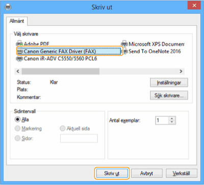 Markera maskinen och klicka på [Skriv ut] eller [OK].