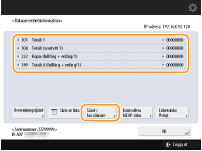 Om du vill kontrollera det totala antalet sidor som har scannats och skickats, tryck på <Sänd-/faxräknare>.