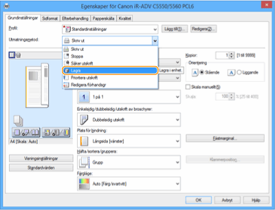 Välj [Lagra] från [Utmatningsmetod] och klicka på [Yes].