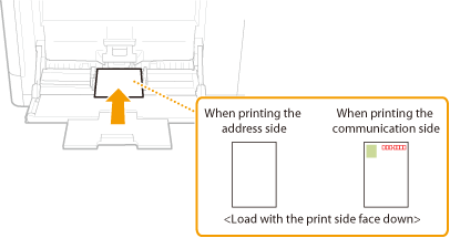 Before loading envelopes or postcards, make some preparations such as flattening any curls on them. Also pay attention to the orientation of envelopes or postcards and which side is face up. Note that neither envelopes nor postcards can be loaded in the paper drawer.