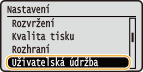 vyberte možnost <Uživatelská údržba> a stiskněte tlačítko