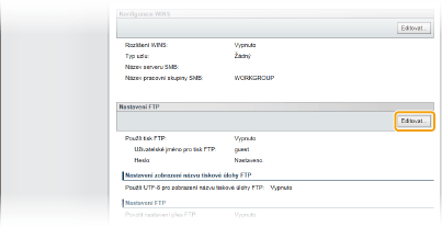 Klikněte na tlačítko [Editovat] v části [Nastavení FTP].