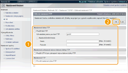Vzhledem k tomu, že výchozí nastavení z výroby neumožňují operace z klientů FTP, zadejte nastavení tak, aby tyto operace byly možné.
