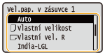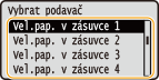 <Vel.pap. v zásuvce 2> až <Vel.pap. v zásuvce 5> se zobrazí, když je nainstalován volitelný podavač papíru nebo kazetová podávací jednotka.