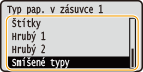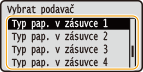 <Typ pap. v zásuvce 2> až <Typ pap. v zásuvce 5> se zobrazí, když je nainstalován volitelný podavač papíru nebo kazetová podávací jednotka.