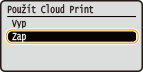 Vyberte možnost <Použít Cloud Print> a stiskněte tlačítko