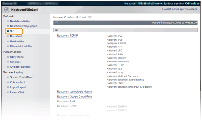 Vyberte možnost <Google Cloud Print> a stiskněte tlačítko