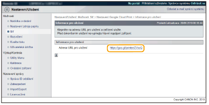 Klikněte na odkaz adresy URL zobrazené v poli [Adresa URL pro uložení].