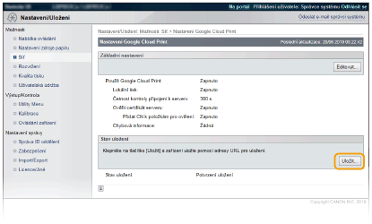 Klikněte na tlačítko [Uložit] v části [Stav uložení].