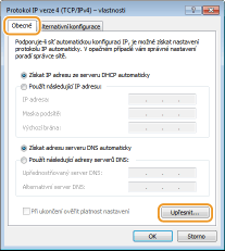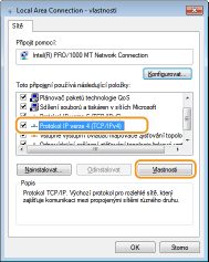 Zaškrtněte políčko [Protokol IP verze 4 (TCP/IPv4)] nebo [Internetový protokol] a klikněte na [Vlastnosti].