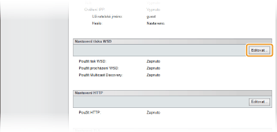 1 | Klikněte na [Editovat] v [Nastavení tisku WSD]. ![]() |