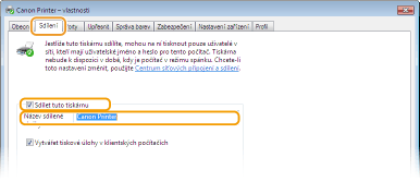 Před prováděním tohoto postupu se přihlaste k počítači s účtem správce. Podle operačního systému a bitové architektury (32bitové nebo 64bitové) tiskového serveru a klientských počítačů se může stát, že nebude možné nainstalovat ovladače tiskárny přes síť. Při implementaci tiskového serveru v doménovém prostředí se poraďte se správcem sítě. |