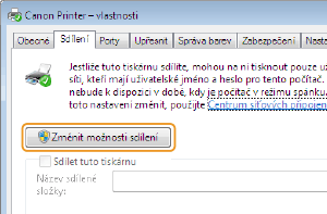 5 | Klikněte na [OK]. Spustí se instalace přídavných ovladačů. Počkejte, až se zobrazí karta [Sdílení]. ![]() Když se zobrazí [Řízení uživatelských účtů] Klikněte na [Ano]. |