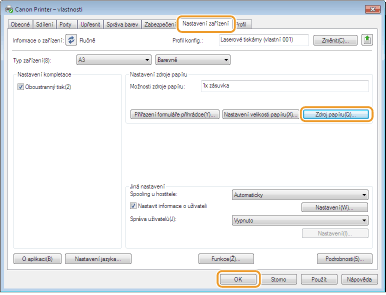 Obvykle je nutné před tiskem zadat velikost a typ papíru vloženého v každém zdroji papíru.